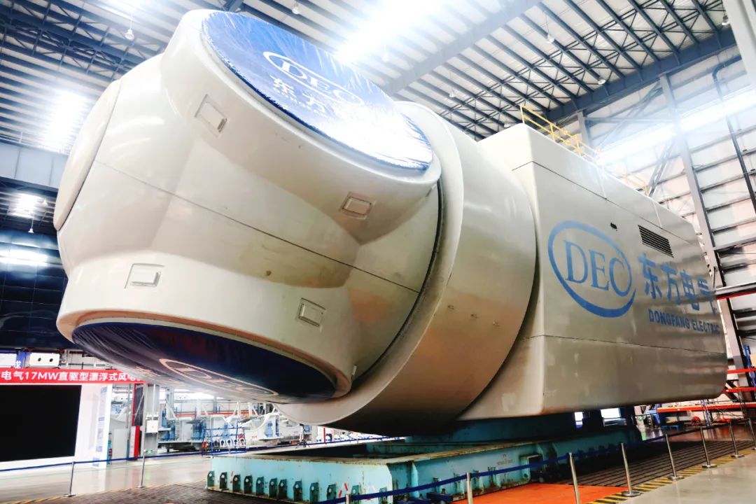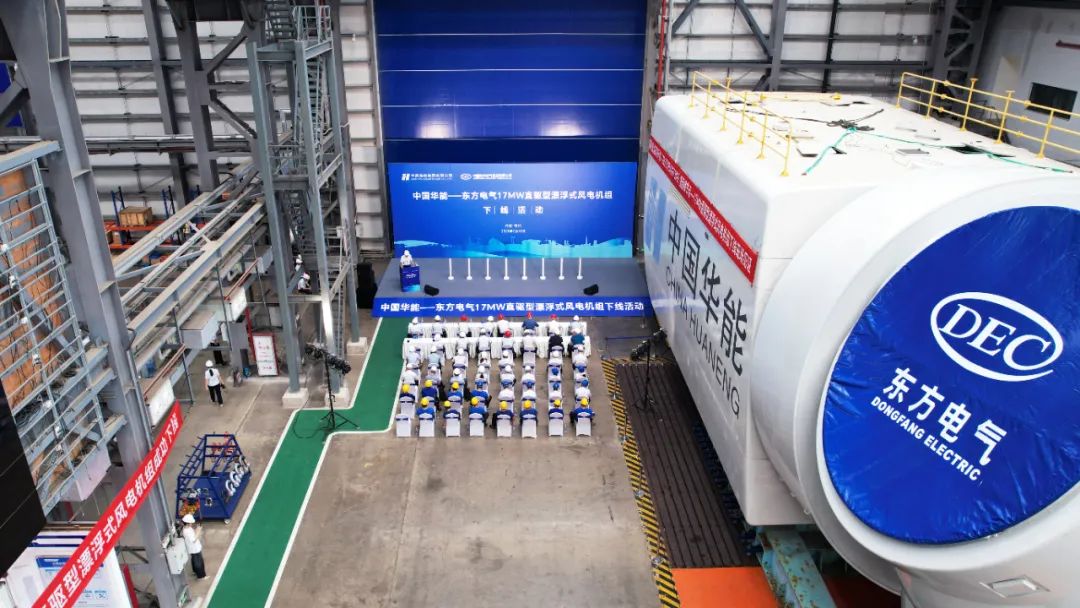 7月10日,由東方電氣集團與中國華能聯合研制的全球單機功率和風輪直徑最大的17兆瓦直驅型漂浮式海上風電機組在福建省福清市順利下線,標志著我國在海上風電裝備制造領域取得新的突破,為我國海上風電走向深遠海提供新的技術支撐。